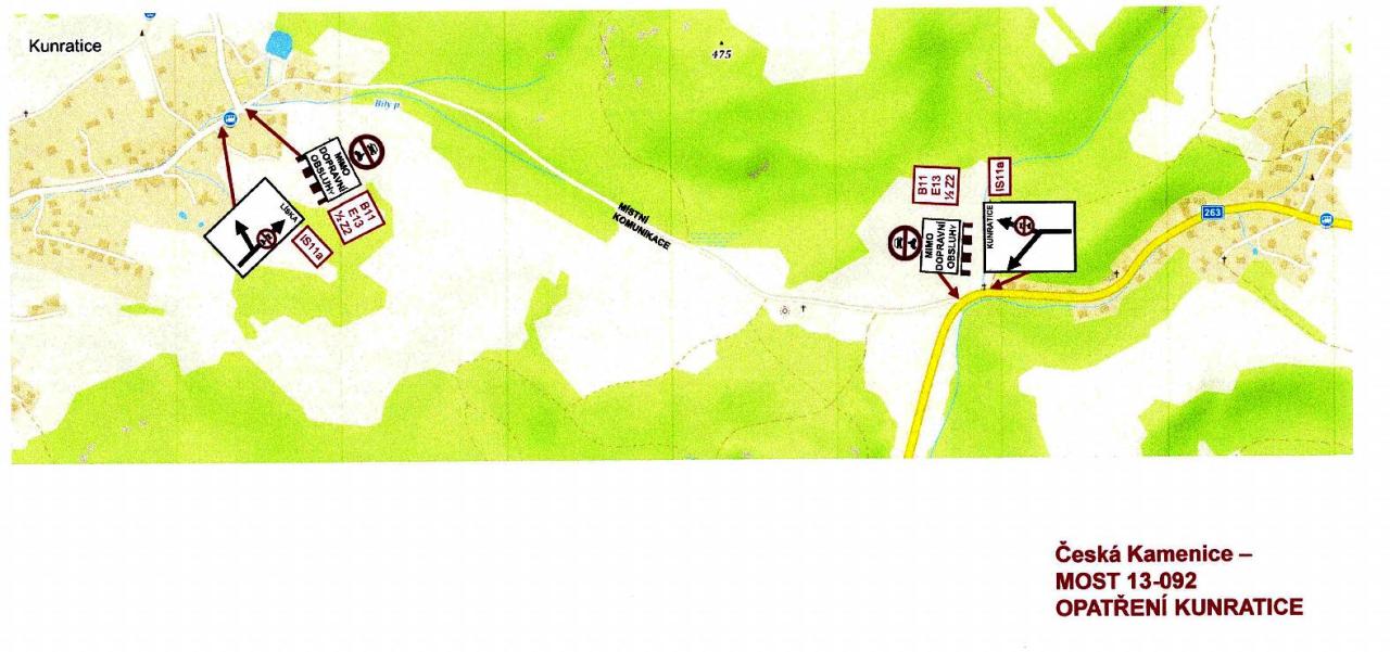 🚦 most bude po dobu stavebních prací průjezdný kyvadlově, ve směru od Liberce bude jeden semafor u přechodu pro chodce do školní jídelny, ve směru od Děčína budou dva synchronizované semafory – jeden před kruhovým objezdem u Lidlu, druhý těsně před mostem